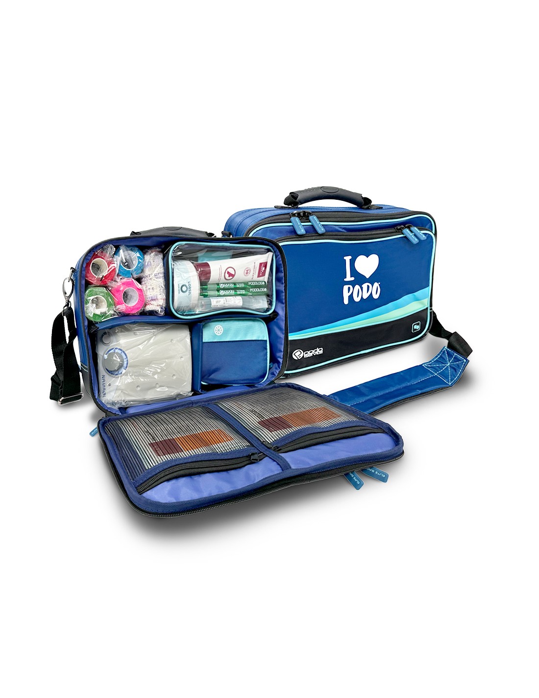 El Maletín Compact Azul “I Love Podo” ha sido diseñado para profesionales de la podología que realizan asistencias limitadas o transportan material muy concreto. Su diseño interior con separadores ajustables y compartimentos organizados permite personalizar el espacio, garantizando una distribución práctica y segura del material clínico.