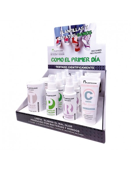 · 4 Sprays Planticlean Plantillas & Calzado (100 ml) → acción antimicrobiana y antifúngica, mantiene calzado y plantillas libres de bacterias, hongos y malos olores.