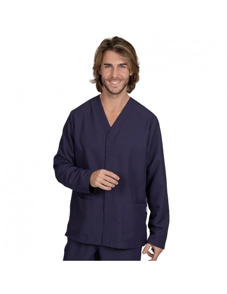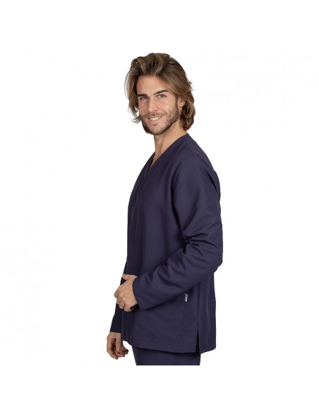 Diseñada para profesionales de la salud. Esta prenda de manga larga presenta un elegante cuello pico y se cierra mediante botones de presión ocultos, proporcionando un aspecto pulcro y moderno.