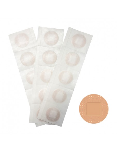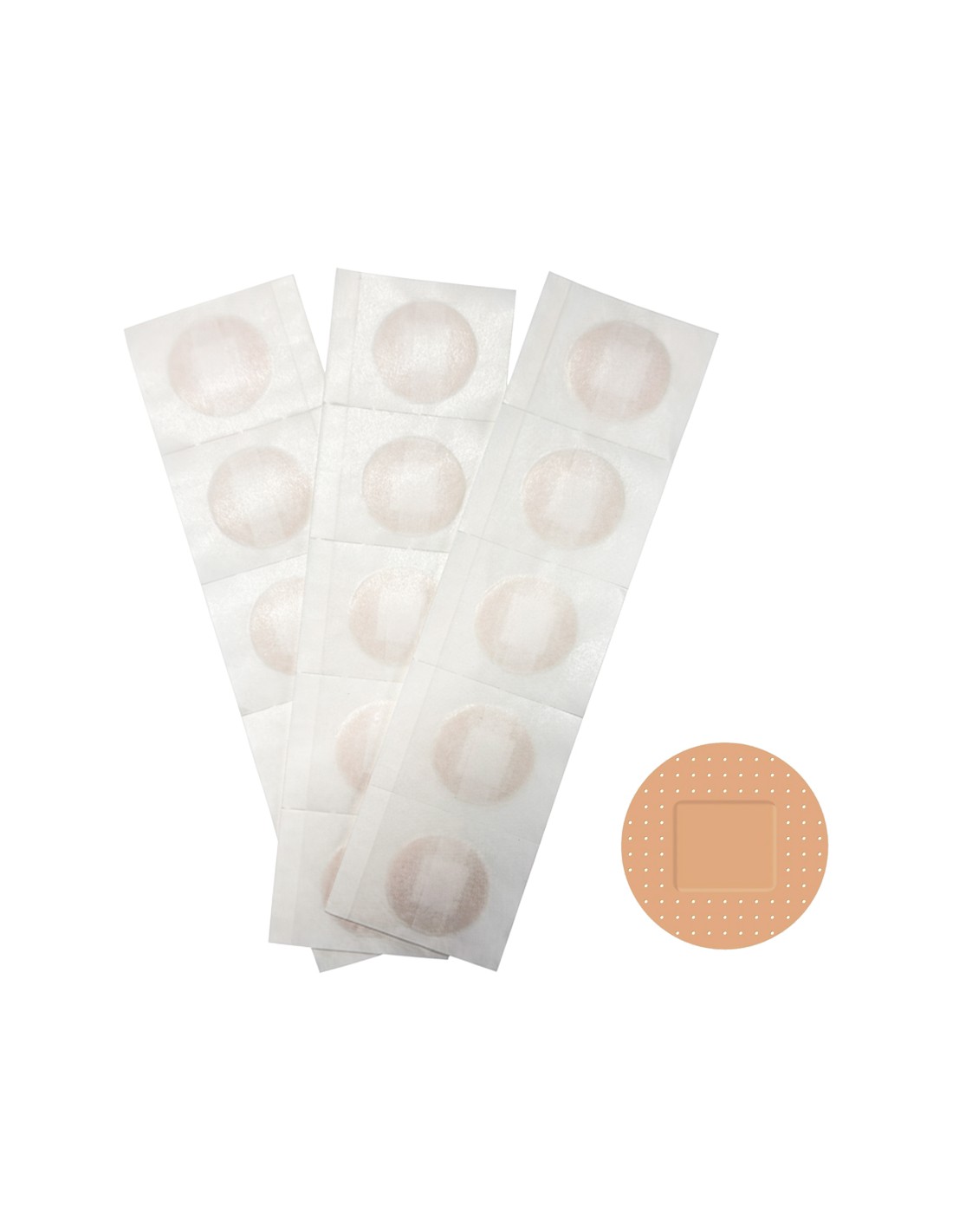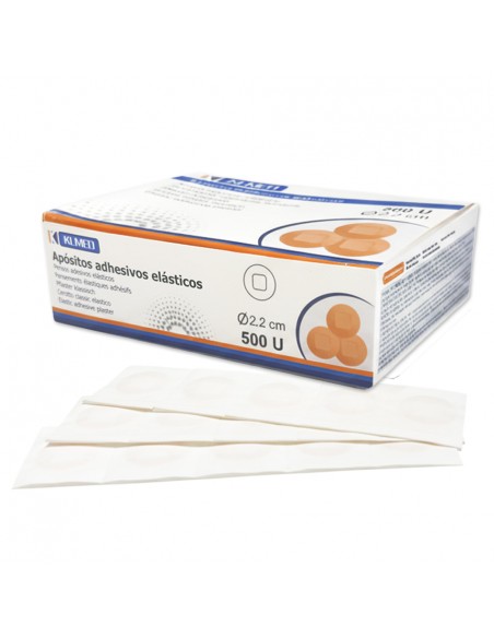 Tiritas redondas elásticas de 2,2 cm de diámetro, color carne, fabricadas con material elástico tipo tejido que se adapta al contorno de la zona aplicada. Diseñadas para cubrir pequeñas heridas o puntos de punción, ofreciendo sujeción flexible sin provocar presión excesiva. Su tonalidad neutra se integra discretamente en la piel.