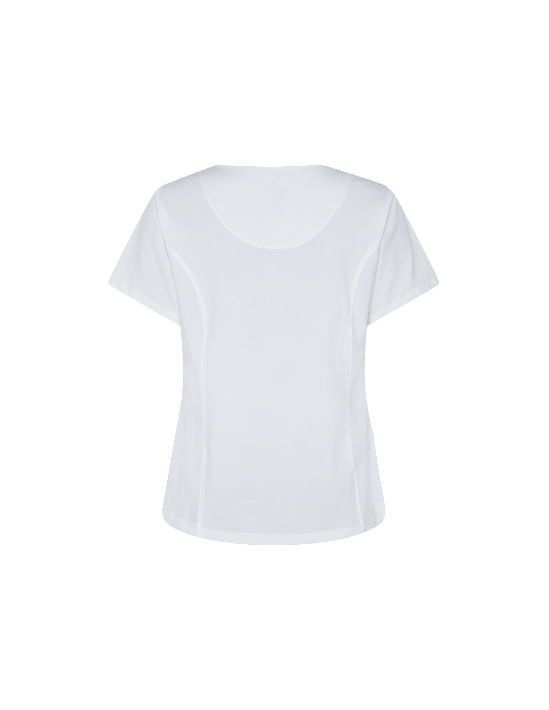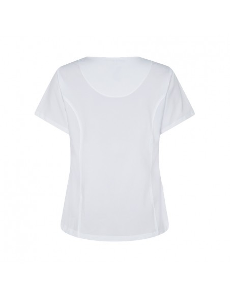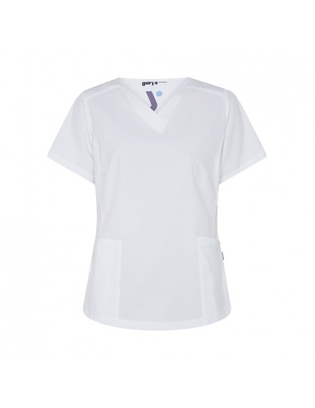 Con mangas cortas y cuello pico, esta casaca ofrece funcionalidad con tres bolsillos delanteros, incluyendo dos en el lateral derecho. Su diseño semi ajustado, con costadillos en el frente y la espalda, pinzas en el pecho y aberturas laterales, proporciona comodidad y movilidad.