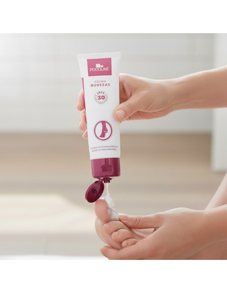 La Crema Podoline Urea 30% en formato 75 ml. es un tratamiento podológico de alta concentración, formulado para pieles muy secas, rugosas y con callosidades persistentes. Especialmente indicada para talones agrietados e hiperqueratosis plantar, proporciona una acción queratolítica potente con resultados visibles desde las primeras aplicaciones.